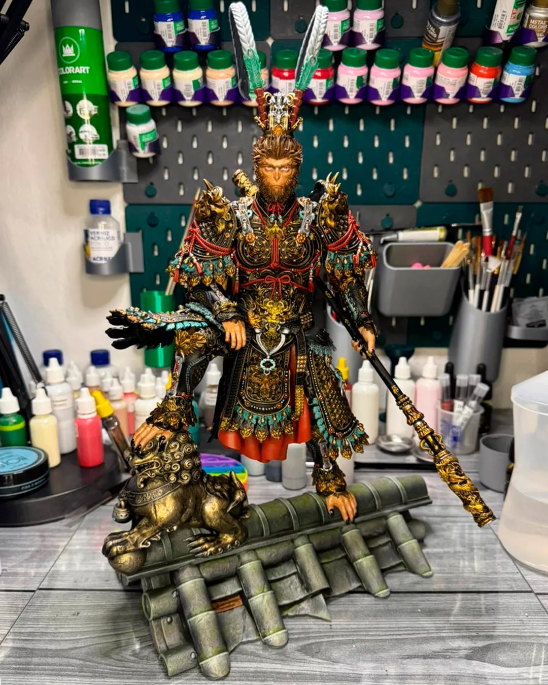 Criei o curso do Sun Wukong justamente para provar isso: você vai ver o passo a passo — do primer ao colecionável finalizado — utilizando materiais simples, sem abrir mão da qualidade e dos efeitos que fazem uma pintura se destacar.